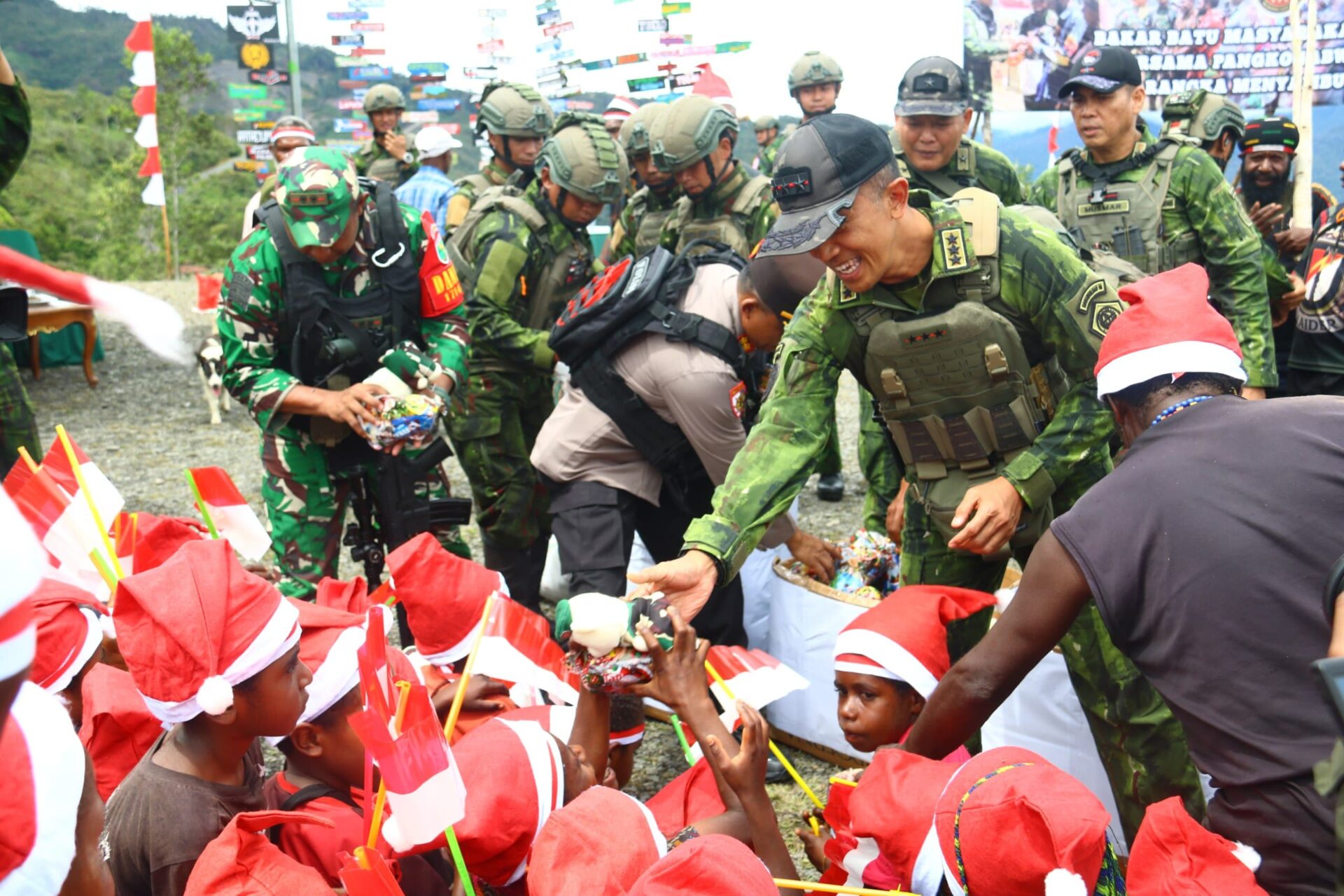 Papua Tengah — Komandan Satuan Tugas (Dansatgas) Yonif 112/Dharma Jaya, Letkol Inf Fiska Bagus Tri Sunaryanto, mendampingi langsung rangkaian kunjungan kerja Panglima Komando Gabungan Wilayah Pertahanan (Pangkogabwilhan) III, Letnan Jenderal TNI Bambang Trisnohadi, S.I.P., beserta rombongan di Kabupaten Puncak Jaya, Papua Tengah, Selasa (23/12/2025).