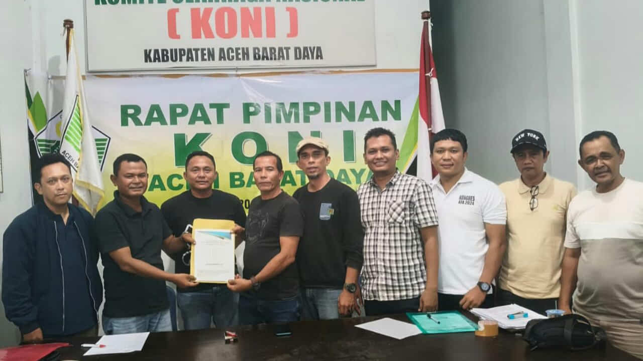 Zulkarnaini yang akrab disapa Om Zul datang ke Sekretariat KONI Abdya, Senin (5/1/2026), didampingi sejumlah anggota timnya.