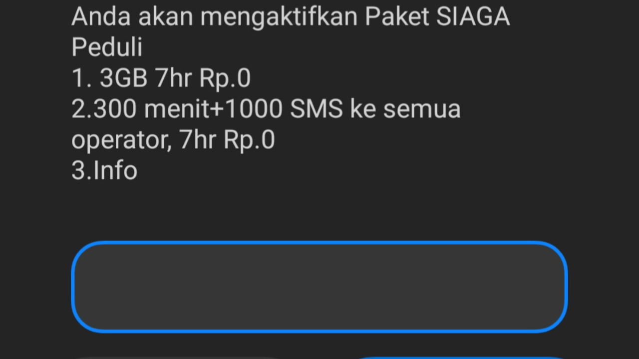 “Selamat, Paket SIAGA Peduli 300mnt AllOpr, 1000 SMS AllOpr /7 hari Rp 0 telah aktif, berlaku s/d tgl 08/12/2025 pkl. 23:59 WIB. Dapatkan paket lainnya di *888# atau MyTelkomsel.” (*)