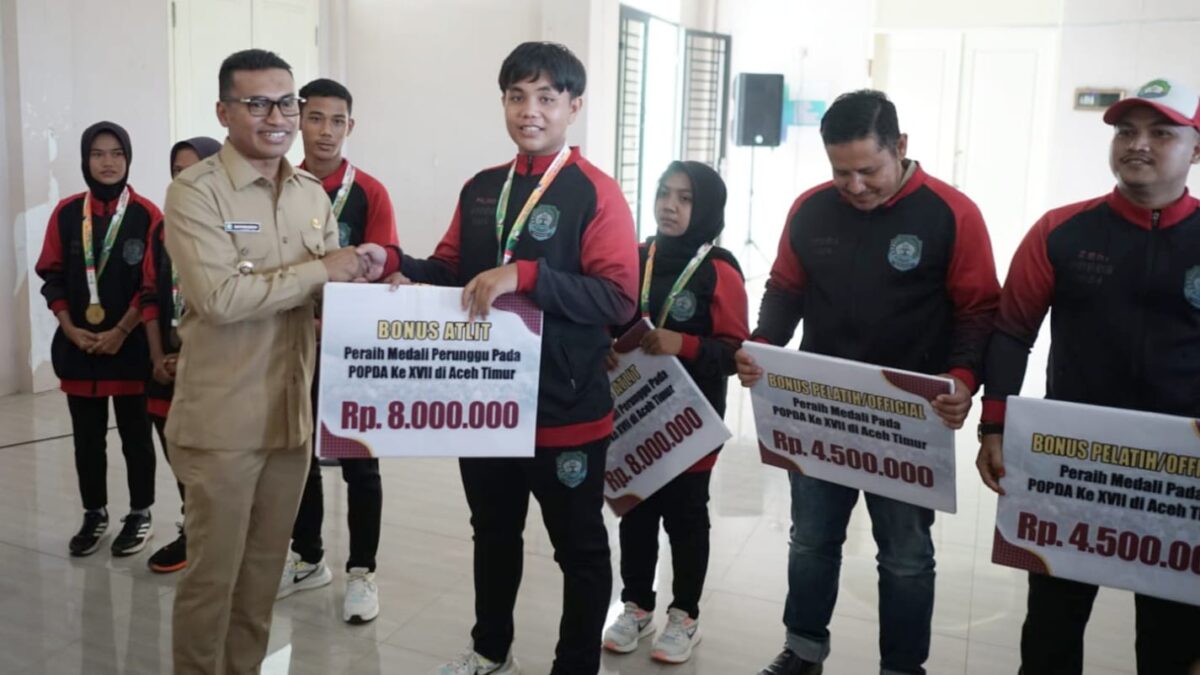 Pada kesempatan itu, Safaruddin memberikan bonus kepada atlet dari cabang olahraga atletik dan karate yang berhasil menyumbang medali bagi Abdya.