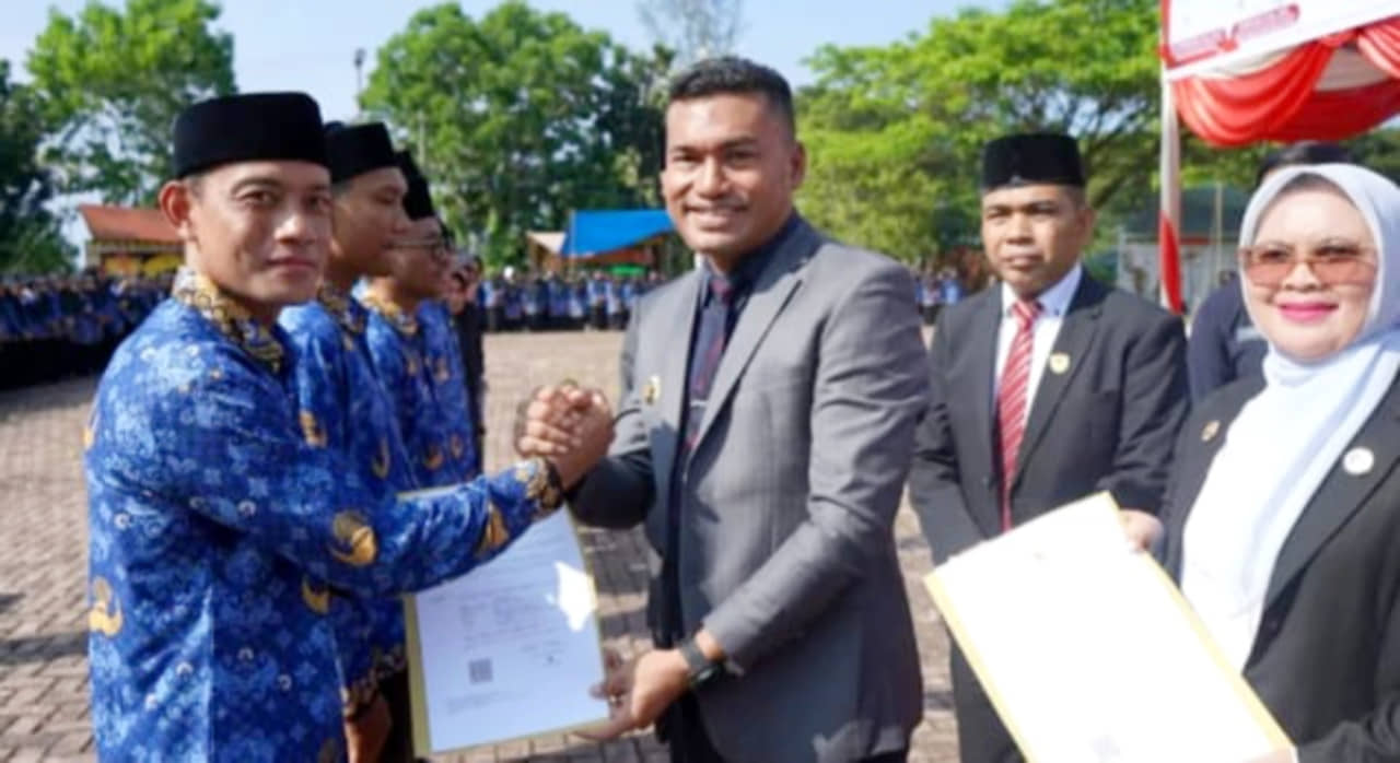 Blangpidie – Bupati Aceh Barat Daya (Abdya) Safaruddin menyerahkan Surat Keputusan (SK) kepada 2.065 Pegawai Pemerintah dengan Perjanjian Kerja (PPPK) Paruh Waktu Tahun Anggaran 2026 di Halaman Kantor Bupati setempat, Gampong Keude Paya, Kecamatan Blangpidie, Senin (9/3/2026).