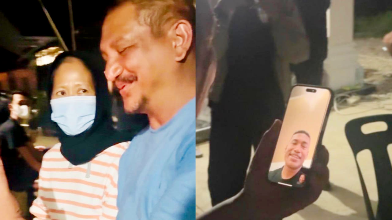 Armia kemudian mengarahkan layar ponsel ke istrinya. Yuyun juga terlihat berkaca-kaca.