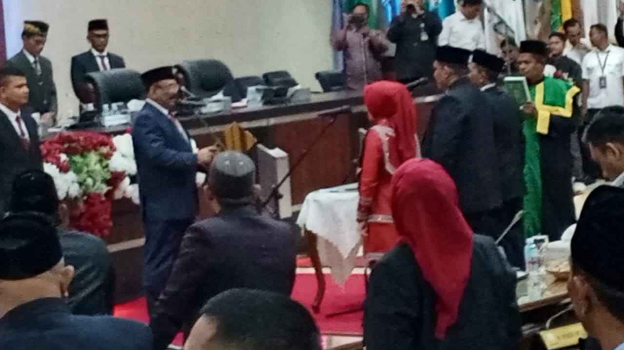 Turut hadir dalam sidang tersebut Plt Sekretaris Daerah Aceh, M. Nasir, serta sejumlah kepala Satuan Kerja Perangkat Aceh (SKPA). Para tamu undangan dari berbagai unsur pemerintahan dan tokoh masyarakat juga terlihat memenuhi ruang sidang, menyaksikan prosesi sakral pengambilan sumpah jabatan yang berlangsung dengan khidmat. (*)