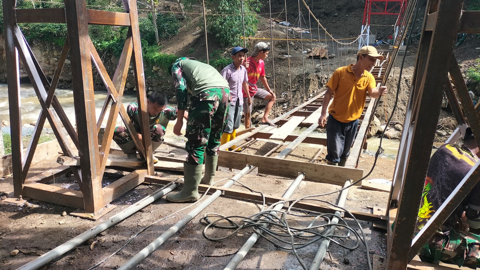 Pembangunan jembatan ini berada di wilayah binaan Koramil 08/Silih Nara yang merupakan bagian dari jajaran Kodim 0106/Aceh Tengah. Dalam pelaksanaannya, personel Kodim diterjunkan langsung ke lokasi bersama personel Yon TP 854/DK. Kegiatan ini juga mendapat dukungan dan partisipasi aktif dari masyarakat setempat yang turut membantu proses pengerjaan di lapangan secara bergotong royong.