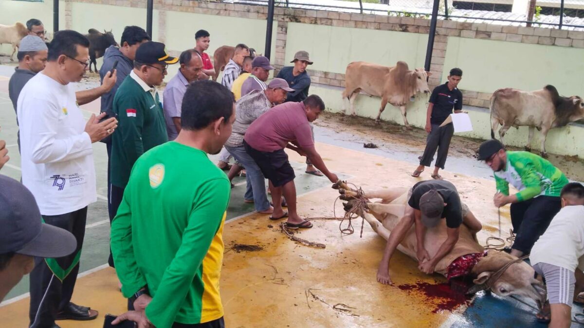 Sebanyak 10 ekor sapi disembelih di halaman serbaguna kantor Kanwil Kemenag Aceh, sebagai bagian dari syiar keagamaan sekaligus bentuk kepedulian sosial kepada sesama.
