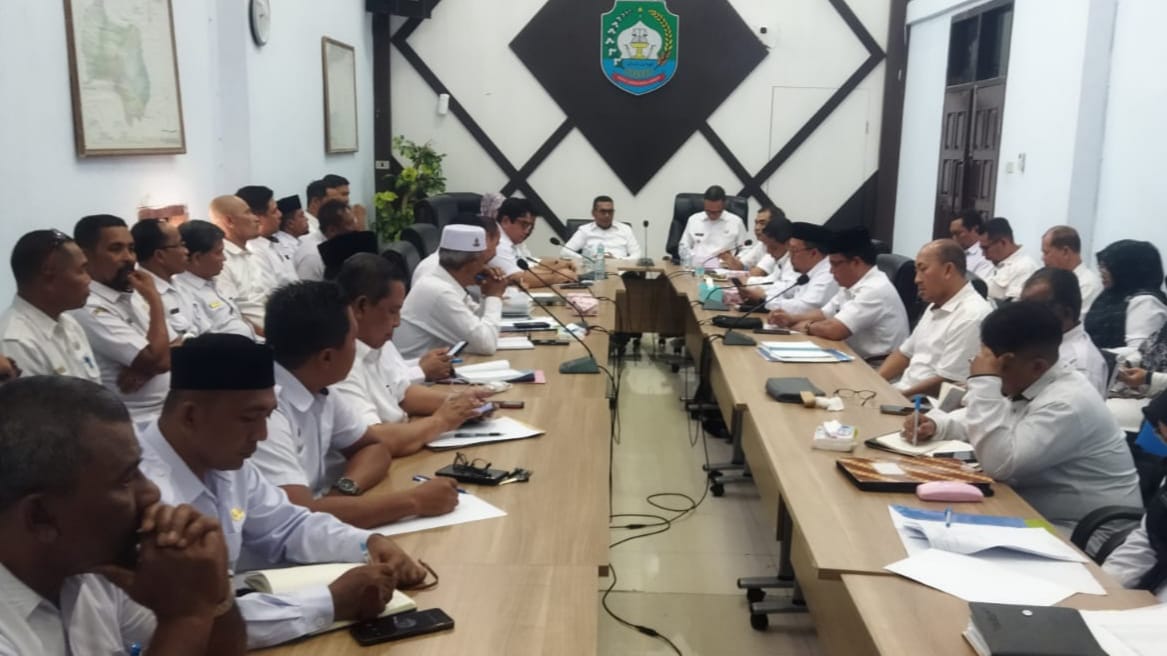 Blangpidie, Acehglobal – Bupati Aceh Barat Daya (Abdya) Safaruddin memimpin rapat pimpinan bersama para kepala Organisasi Perangkat Daerah (OPD) dan kepala bagian Setdakab di Oproom Kantor Bupati Abdya, Rabu (20/8/2025).