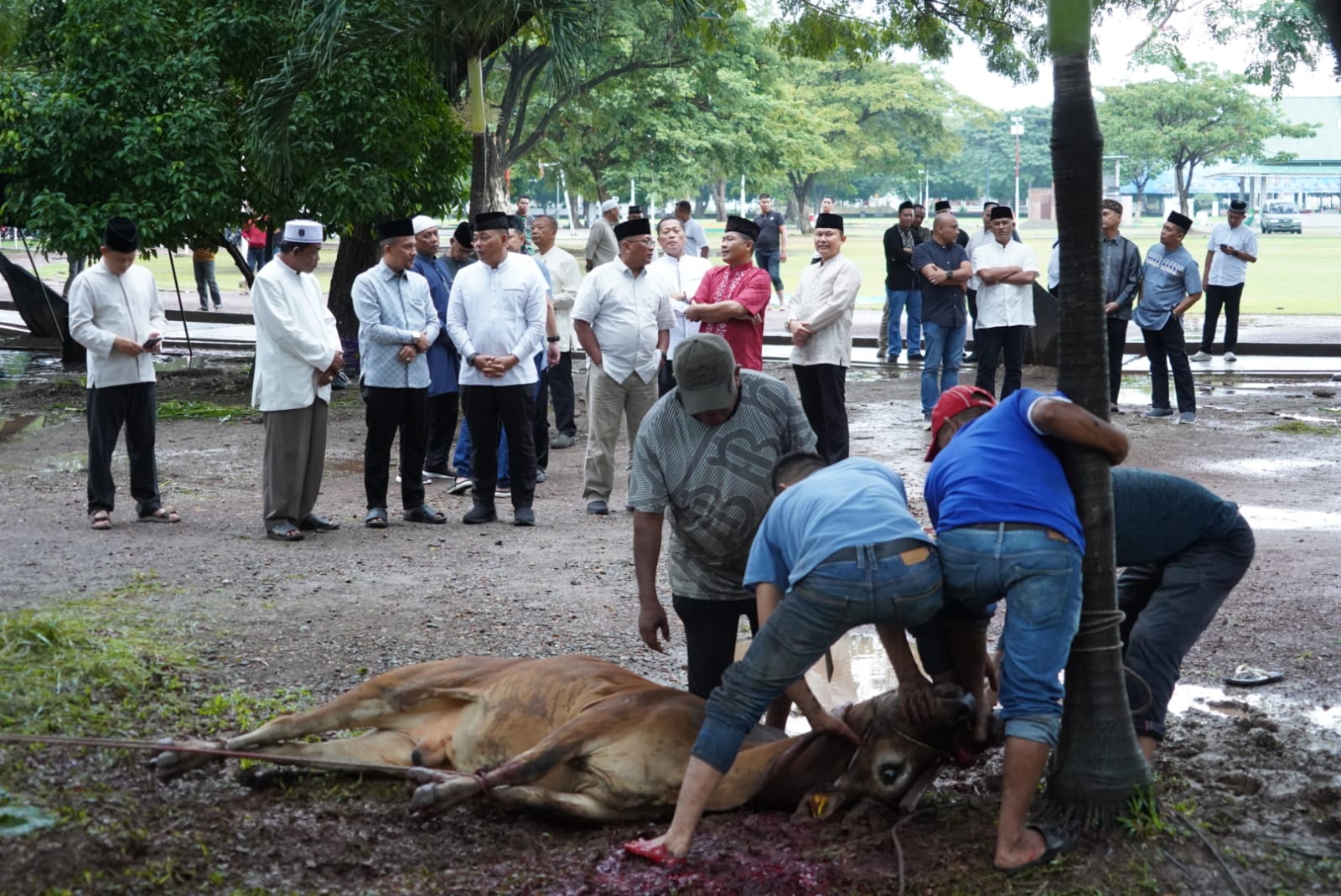 Banda Aceh – Kepala Staf Komando Daerah Militer Iskandar Muda (Kasdam IM), Brigadir Jenderal TNI Dwi Sasongko, S.E., M.H., mewakili Pangdam Iskandar Muda menghadiri sekaligus melaksanakan pemotongan dan penyerahan secara simbolis hewan Meugang dalam rangka menyambut Bulan Suci Ramadhan 1447 H/2026 M. Kegiatan tersebut berlangsung di Lapangan Blang Padang, Banda Aceh, Selasa (17/2/2026), dengan penuh suasana kebersamaan dan nuansa kekeluargaan.
