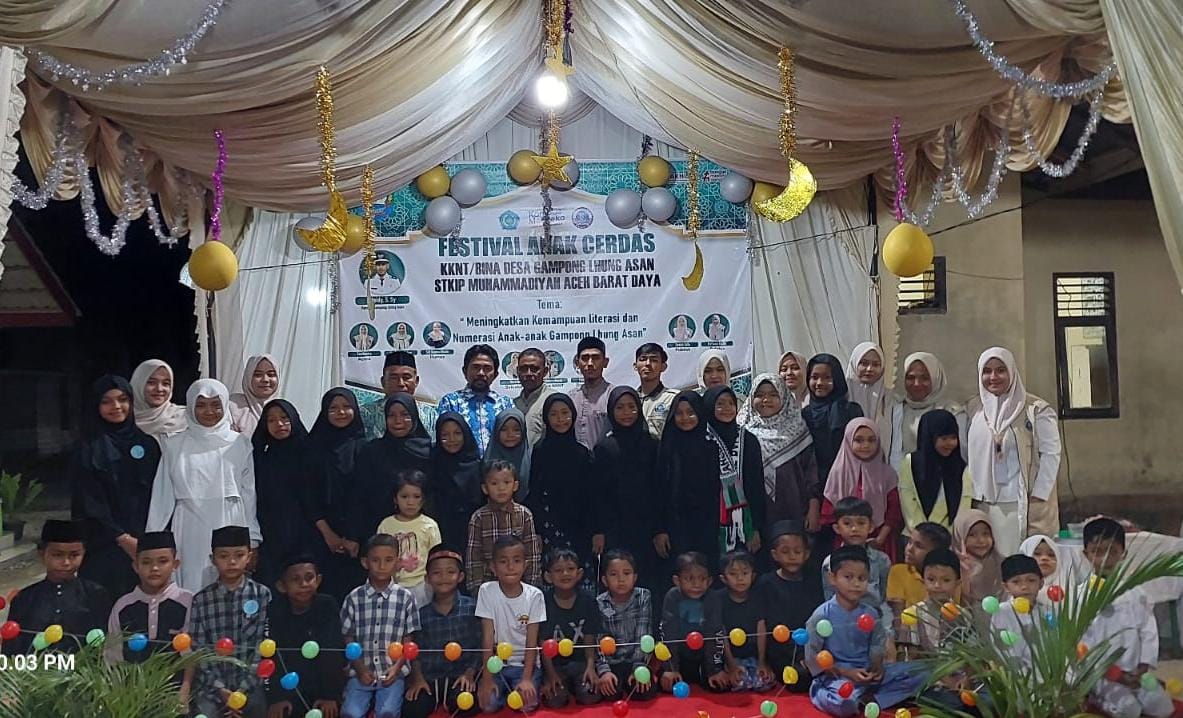 Blangpidie, Acehglobal — Mahasiswa Kuliah Kerja Nyata Tematik (KKNT) STKIP Muhammadiyah Aceh Barat Daya (Abdya) menggelar Festival Anak Cerdas di Komplek Pendidikan dan Kesehatan Gampong Lhung Asan, Jumat malam (13/6/2025).