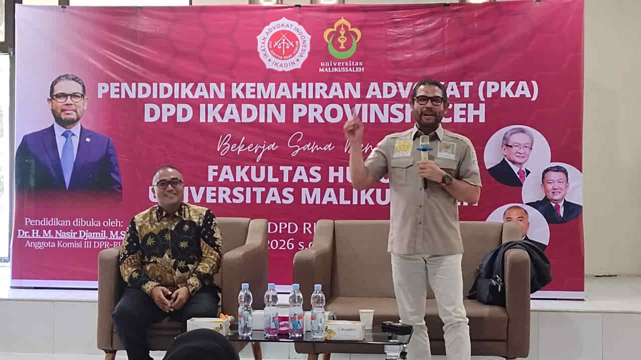 Hal tersebut Nasir Djamil sampaikan saat mengisi materi pada Pendidikan Kemahiran Advokat (PKA) yang diselenggarakan Ikatan Advokat Indonesia (IKADIN) DPD Aceh bekerja sama dengan Fakultas Hukum Universitas Malikussaleh (Unimal), di Sekretariat DPD RI, Banda Aceh, Selasa (10/2/2026).