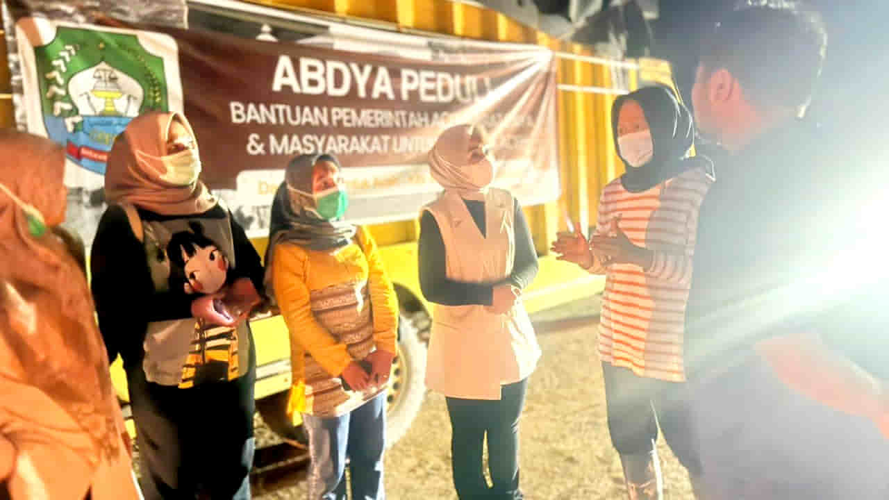 | BLANGPIDIE — Istri Bupati Aceh Barat Daya (Abdya) Ny. Ratna Sari Safaruddin datang langsung ke Aceh Tamiang mengantarkan bantuan bersama Tim Relawan Pemerintah Kabupaten (Pemkab) yang berhasil menembus jalur darat Aceh Tamiang, via Medan, Sumatera Utara (Sumut), tadi malam, Jumat (5/12).