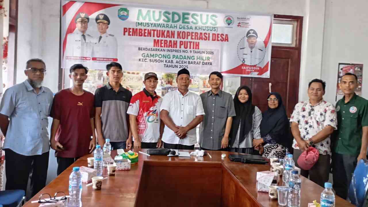 Keuchik Gampong Padang Hilir, Saifuddin, menyampaikan bahwa pendirian Kopdes Merah Putih merupakan tindak lanjut dari Instruksi Presiden Republik Indonesia Nomor 9 Tahun 2025 tentang percepatan pembentukan koperasi di setiap desa dan kelurahan.