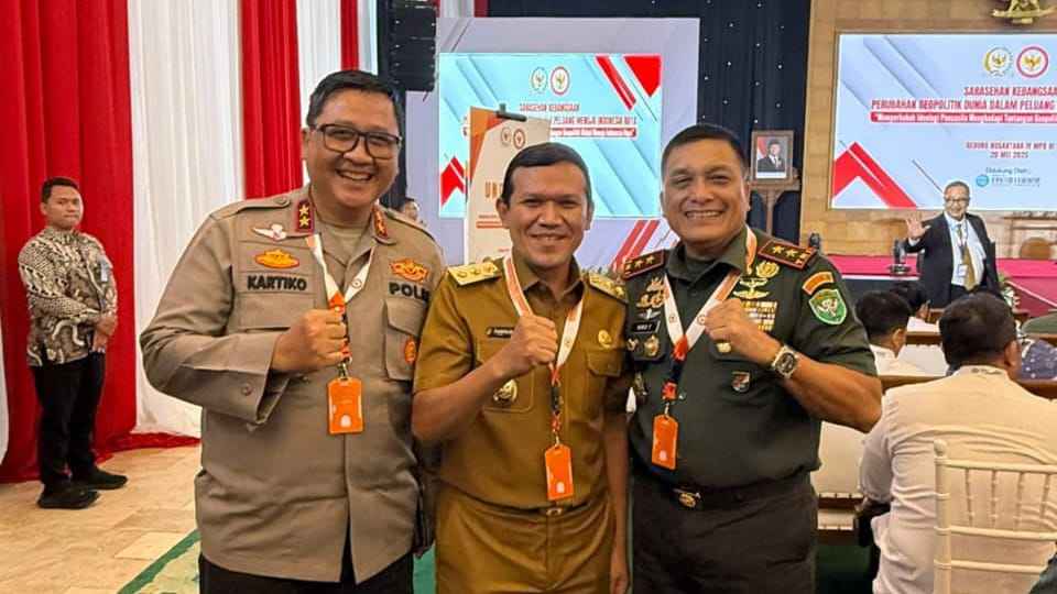Jakarta, Acehglobal — Wakil Gubernur Aceh Fadhlullah, S.E bersama /wabup-abdya-serahkan-oleh-oleh-beras-varietas-sigupai-ke-pangdam-im/" target="_blank" rel="noopener">Pangdam Iskandar Muda Mayor Jenderal TNI Niko Fahrizal, M. Tr. (Han) dan /kapolda-aceh-ganti-kasat-reskrim-polres-abdya/" target="_blank" rel="noopener">Kapolda Aceh Irjen Dr. Achmad Kartiko, terlihat tampak kompak saat menghadiri kegiatan Sarasehan Kebangsaan perubahan geopolitik dunia dalam peluang menuju Indonesia Raya.